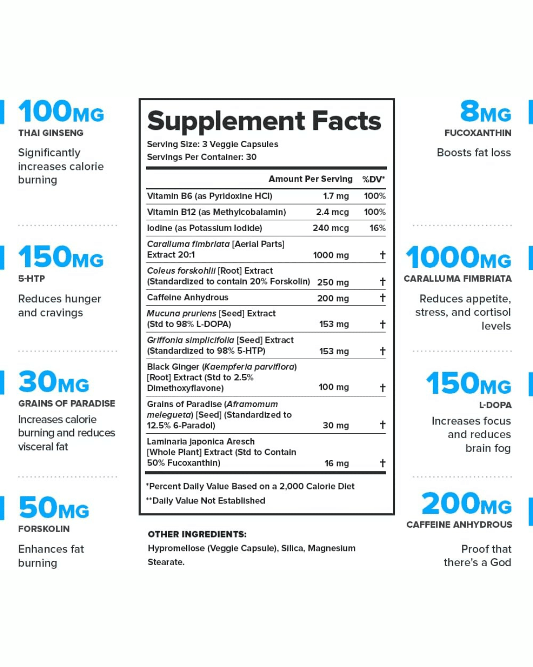 Este quemador de grasa acelera el metabolismo, reduce el apetito y da energía sin causar ansiedad. Además, ayuda a quemar calorías más rápido y controla los antojos. Está hecho con ingredientes naturales, lo que lo hace ideal para perder grasa de forma segura.