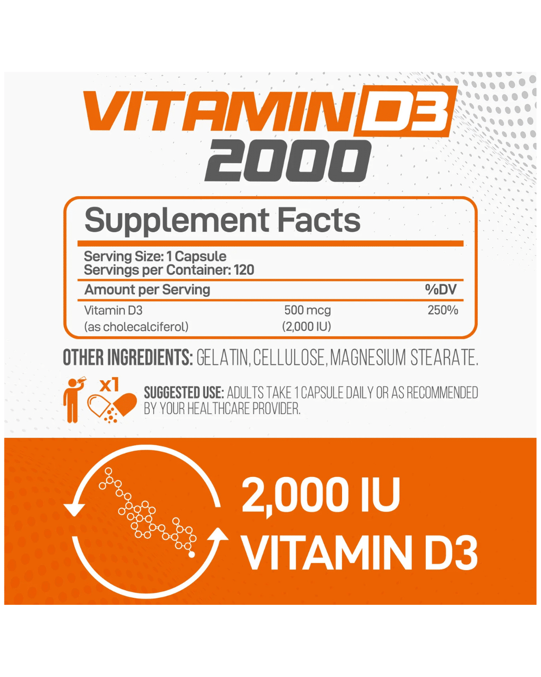 • Presentación: 120 cápsulas por frasco, proporcionando un suministro de 4 meses de Vitamina D3 esencial.